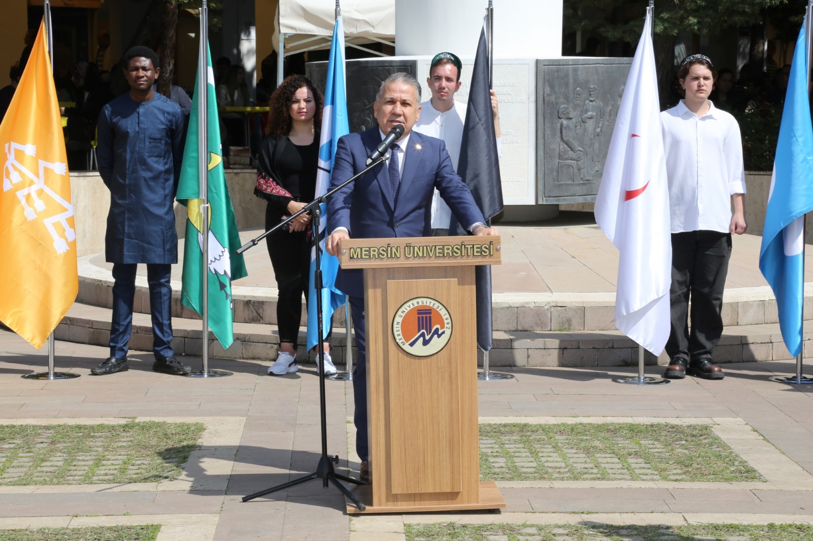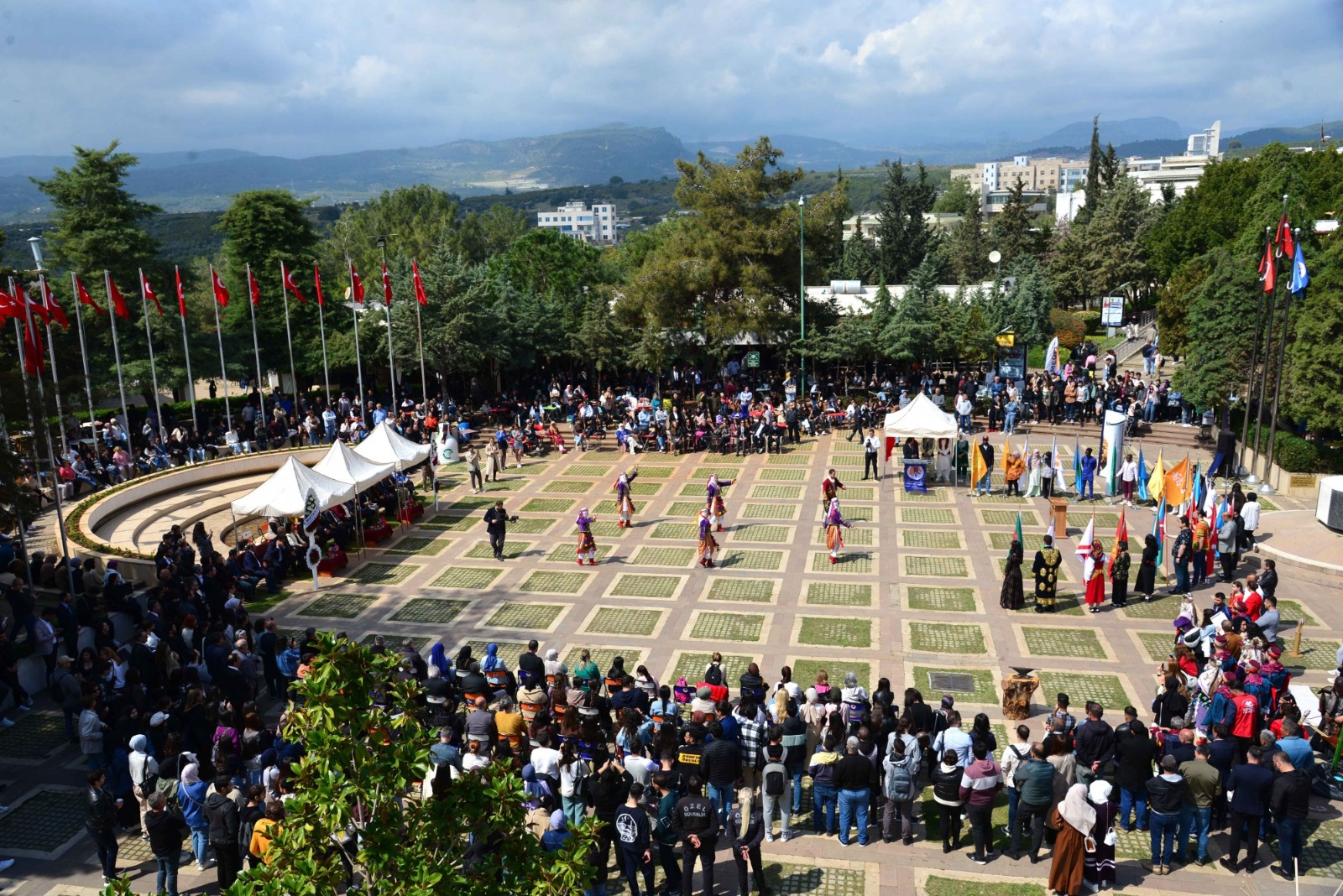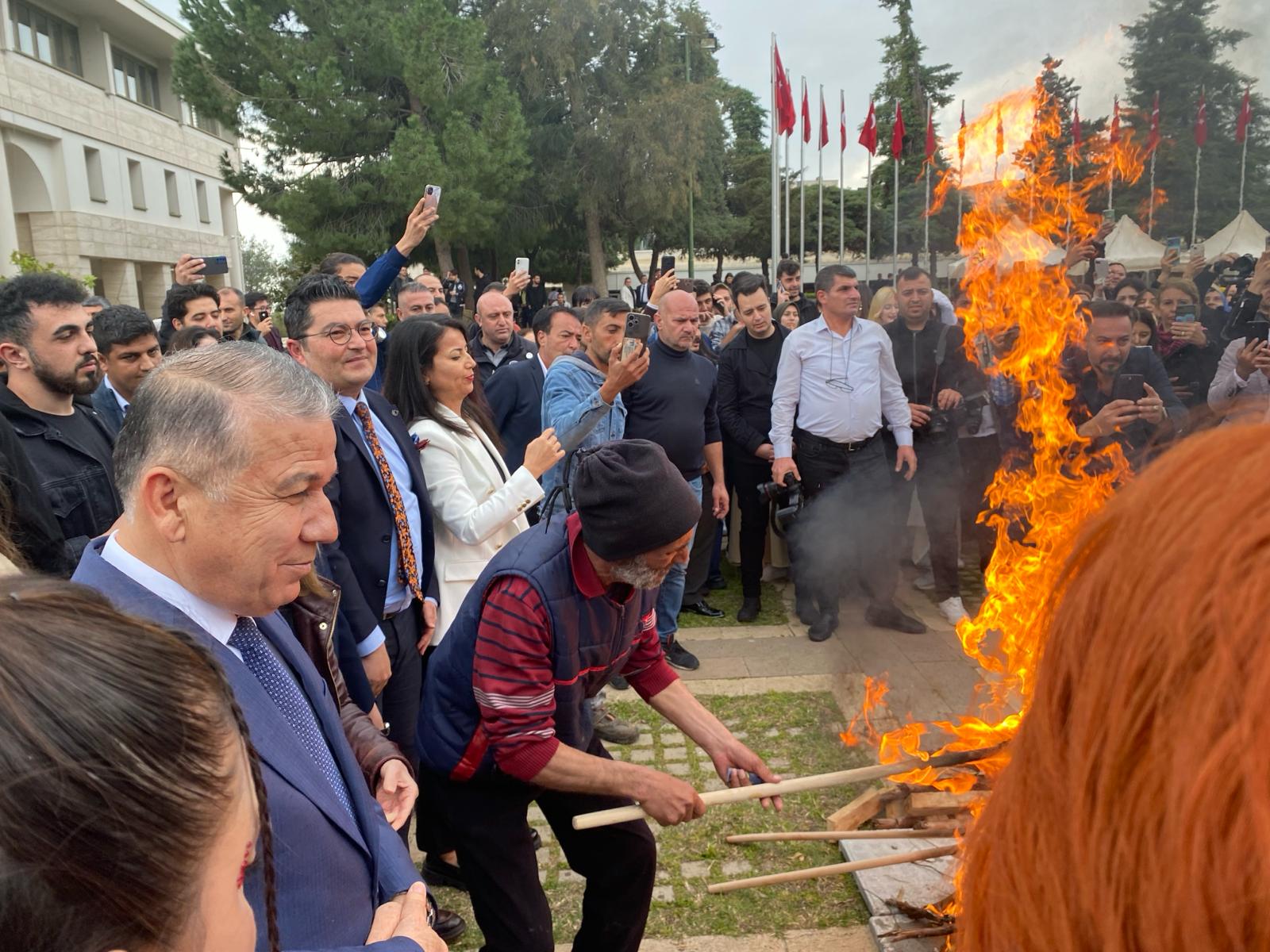 21 Mart Perşembe günü Üniversitemiz Cumhuriyet Meydanı’nda gerçekleşen kutlamalarında Nevruz Bayramı kutlamalarına, Ankara Hacı Bayram Veli Üniversitesi Türk Halk Bilimi Bölümü öğretim üyesi Prof. Dr. Ruhi Ersoy ve hanımefendi Süreyya Ersoy, Üniversitemiz Rektörü Prof. Dr. Erol Yaşar, Rektör Yardımcımız Prof. Dr. Mehmet Çağrı Çetin, Mersin Büyükşehir Belediyesi Kültür ve Sosyal İşler Dairesi Başkanlığı Koordinatörü Bengi İspir Özdülger, Adana İl Kültür Turizm Müdürü Emre Duru, Rektör Danışmanlarımız, akademik ve idari personeli ile öğrencilerimiz katıldı.