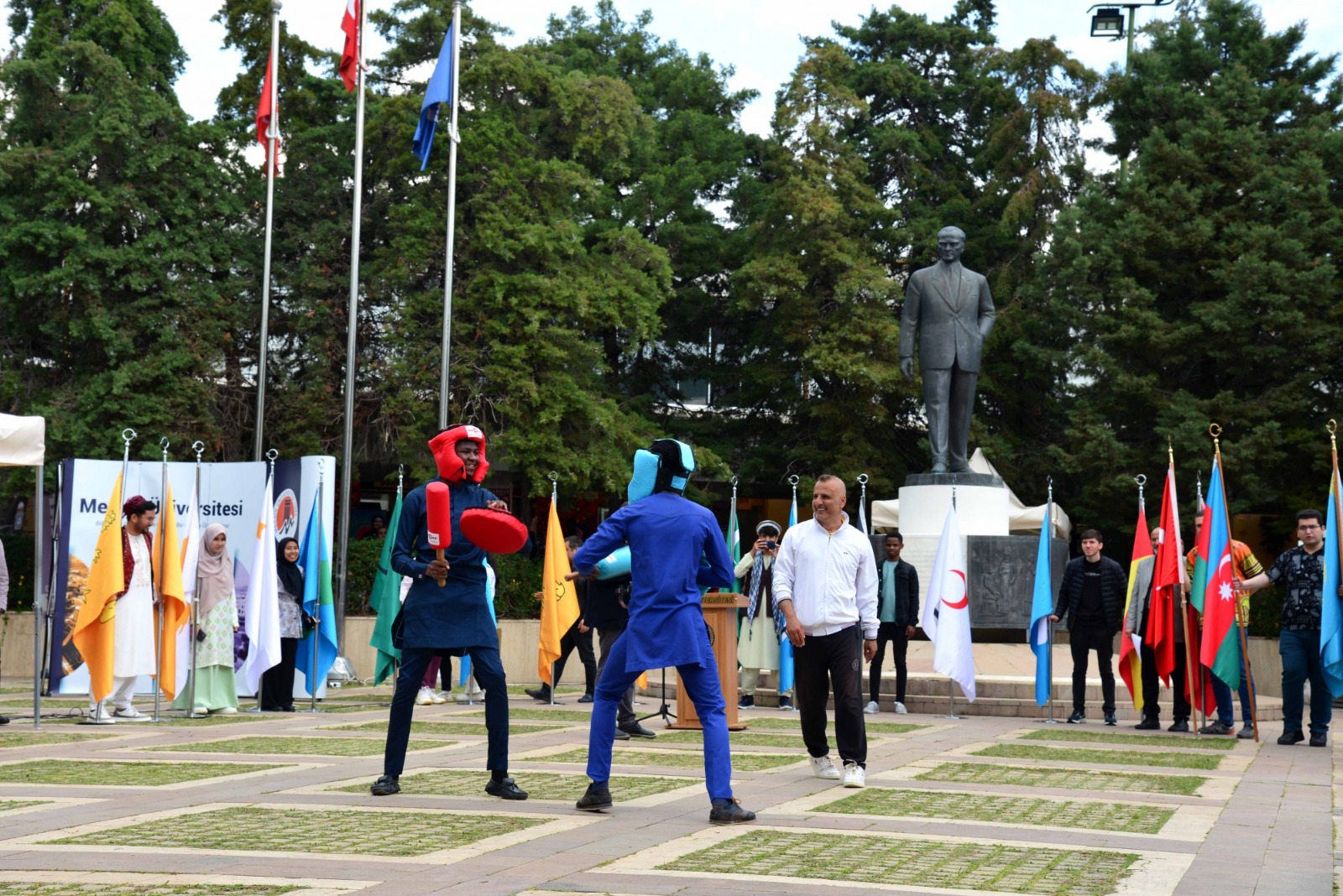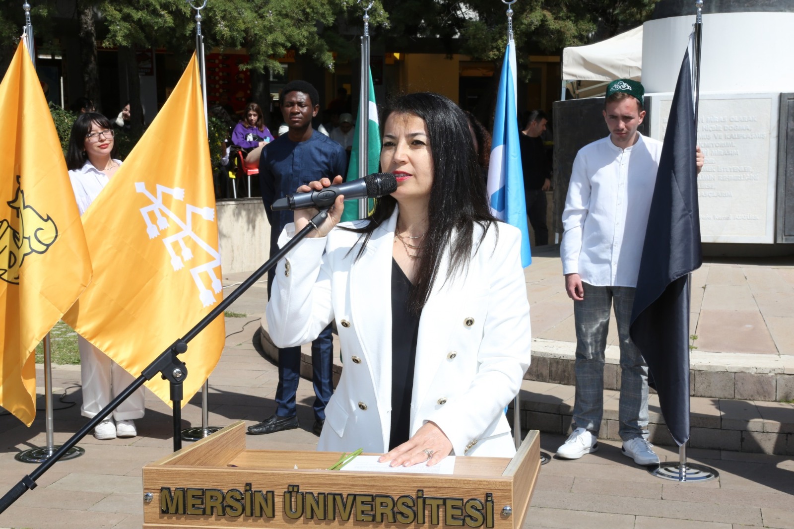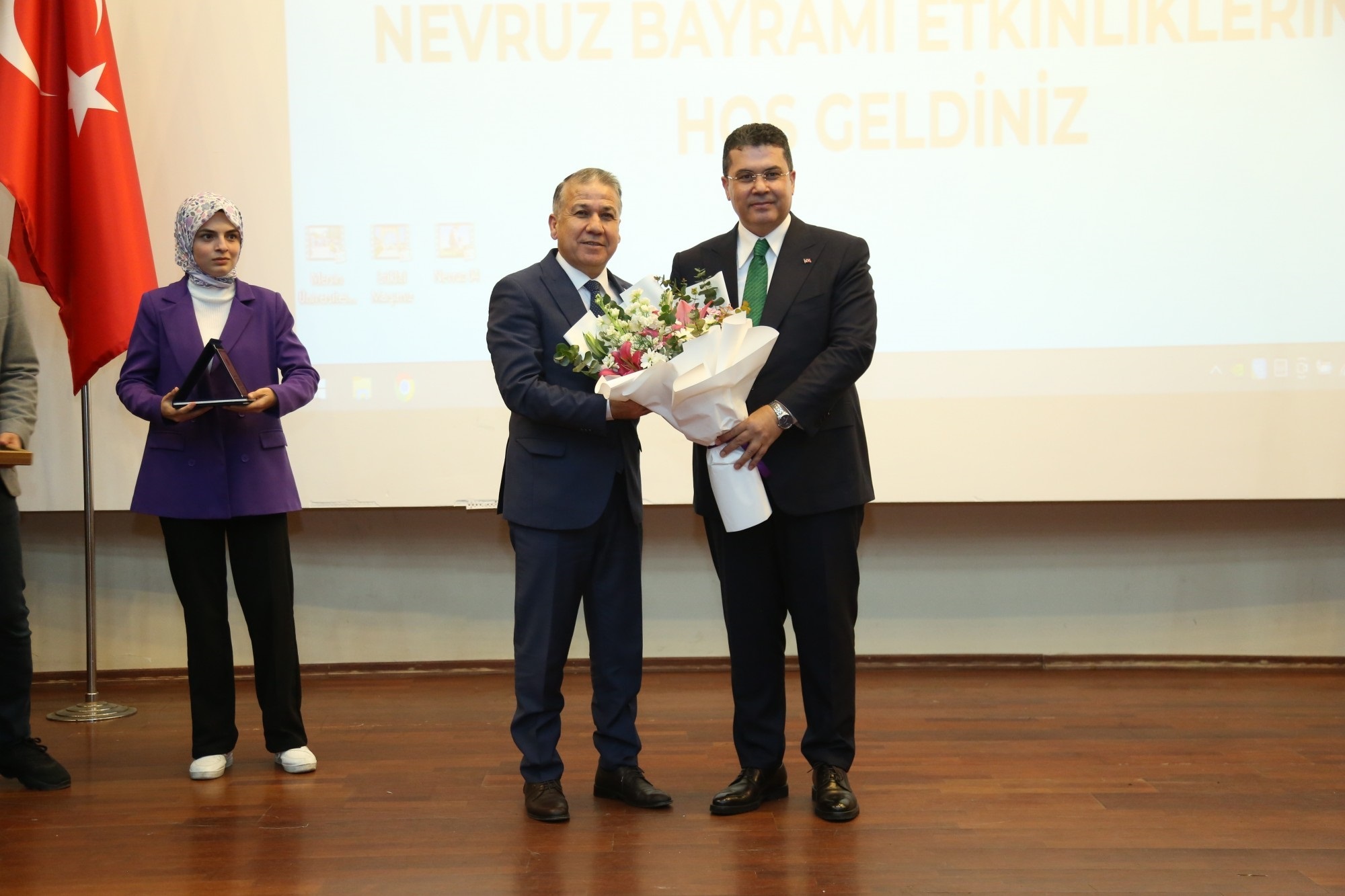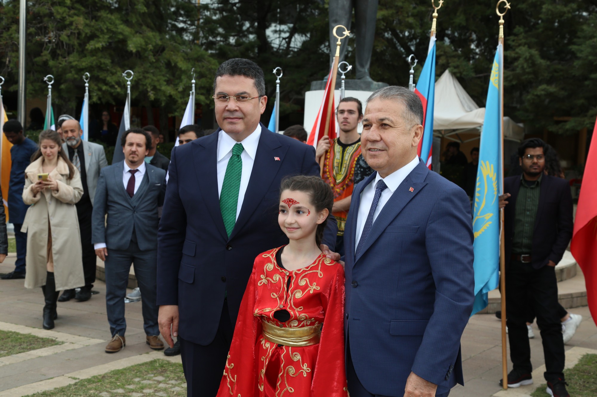 Üniversitemizin Cumhuriyet Meydanı’nda 21 Mart Perşembe günü gerçekleşen programda, TUAM Öğretim Görevlisi Dr. Ümmü Gülsüm Altıner Bozlak’ın koordinatörlüğünde TUAM öğrencileri tarafından 16 Türk devletinin bayraklarından oluşan bayrak geçişi töreni yapıldı. Ardından günümüzde varlığını sürdüren 7 Türk devletini temsil eden öğrencilerin kutlama mesajlarını barındıran maniler okundu. Sonrasında Nevruz kutlamalarının önemini, sevincini, güzelliğini, coşku ve heyecanını katılımcılara aktaran şiirleri, Zuhre Esmaily, Muhammed Navid Nadiri, Azatullah Nazari adlı öğrenciler, TUAM Öğretim Görevlisi Dr. Onur Sömen’in piyano ezgileri eşliğinde okudular.