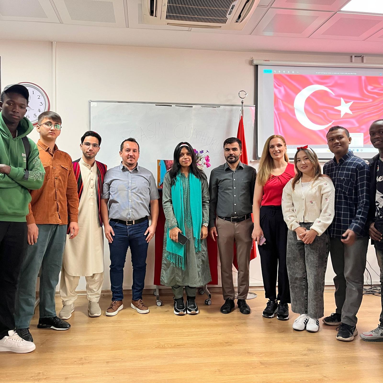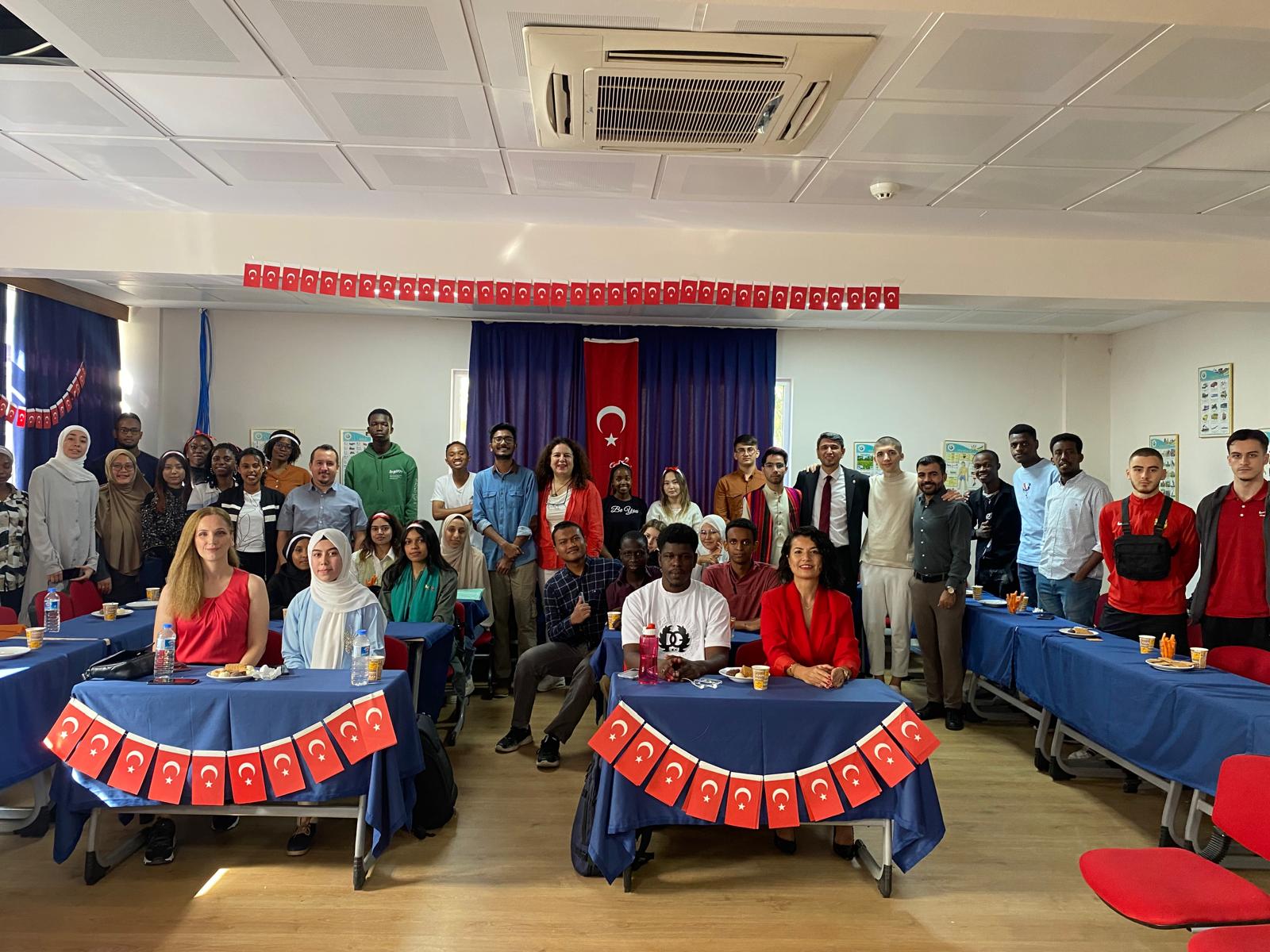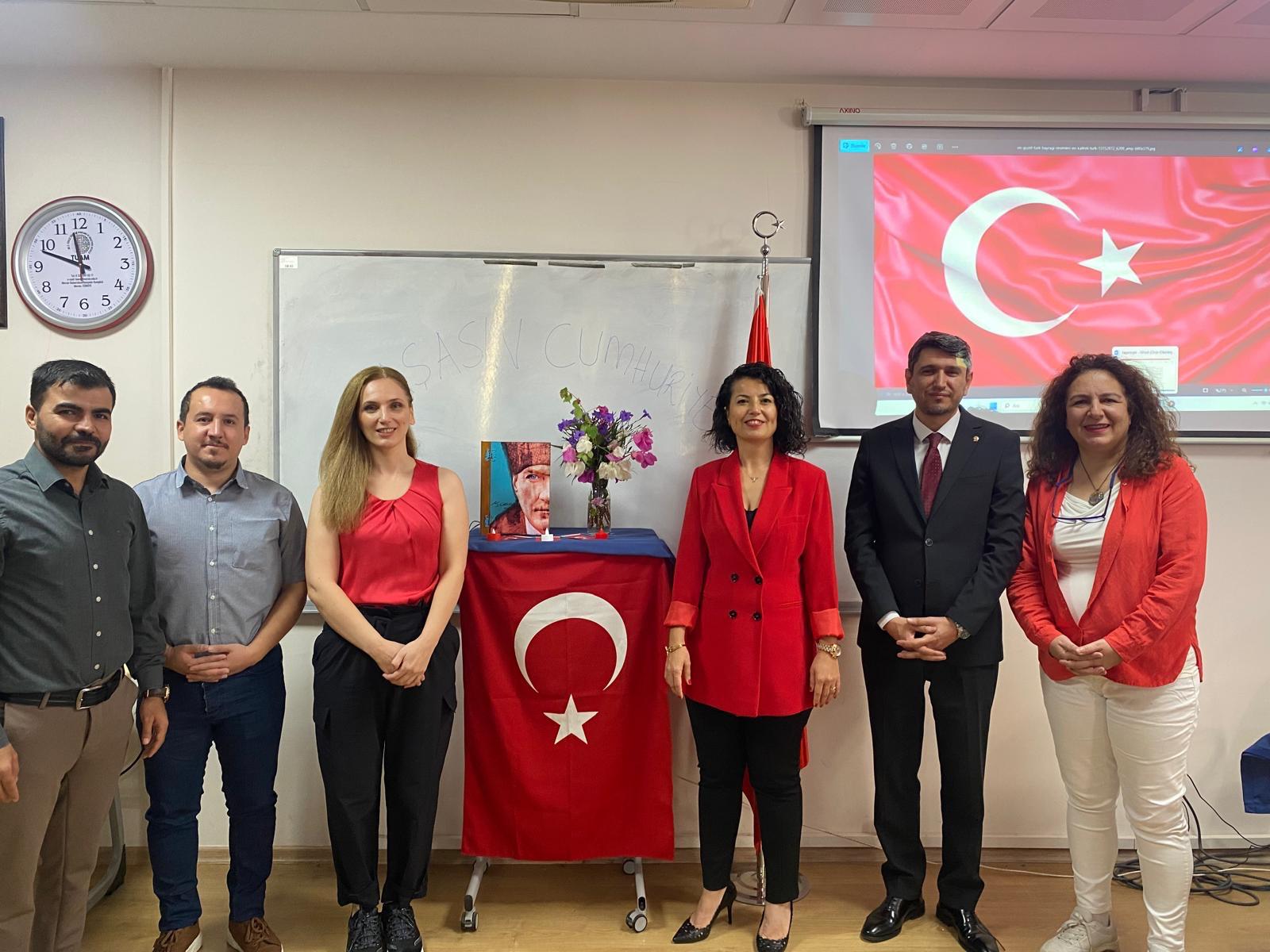 MERSİN TUAM Cumhuriyetin 101. yılını kutladı. Dünyanın dört bir yanından gelen öğrenciler, hem Cumhuriyet Bayramı şiirleri, marşları söylediler hem de kendi kültürlerini tanıtarak bu coşkuya ortak oldular. Cumhuriyetimizin 101. yılı kutlu olsun.