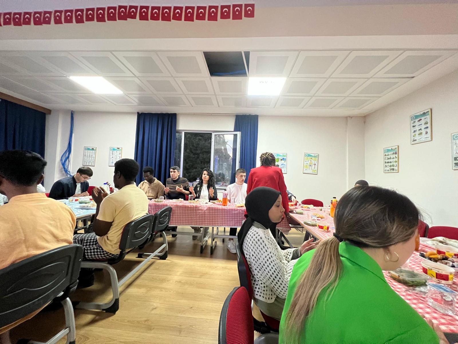 MEÜ TUAM YTB öğrencilerinin katıldığı iftar sofrasında gönüller bir araya geldi. Hoş sohbetler edildi. Öğrencilerin seslendirdiği güzel dinletiler beğeniyle dinlendi. Ardından bayramlaşma geleneği gerçekleştirildi.