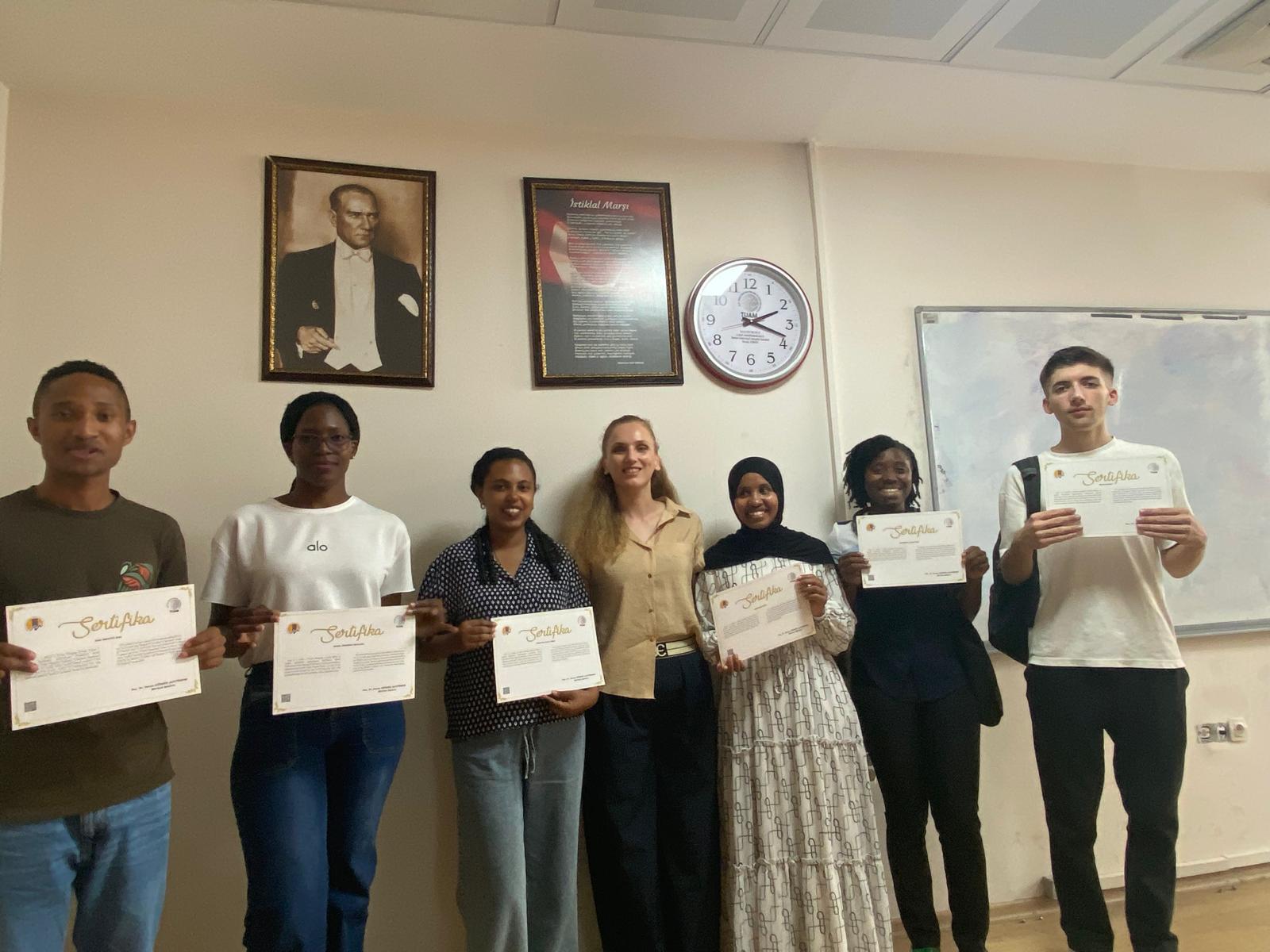 MEÜ TUAM YTB öğrencileri, 2024-2025 Eğitim-Öğretim yılında A1, A2, B1, B2, C1 kurları ile konuşma kulübü ve akademik Türkçe eğitimlerinin tamamlanmasının ardından C1 kuru dil yeterliği sertifikalarını aldılar. Akademik Türkçe eğitiminde, Mersin Üniversitesi İktisadi ve İdari Bilimler Fakültesi İşletme Bölümünden Prof. Dr. İlhan Ege, Fen Fakültesi Kimya Bölümünden Prof. Dr. Nermin ŞİMŞEK KUŞ, Bilgisayar Teknolojileri Bölümünden Doç. Dr. Ömer Faruk İSLİM, Fen Fakültesi Biyoteknoloji Bölümünden Doç. Dr. Dilek TEKDAL, Su Ürünleri Fakültesinden Doç. Dr. Özgür ÖZBAY ile MEÜ TUAM kurumu öğretim elemanları yer aldı. Bu eğitimin sonunda öğrencilerin dil becerileri ve akademik yetkinlikleri gelişti. Öğrenciler, Türkçe dil yeterliklerini kazanarak üniversite eğitimlerine hazır hâle geldiler.