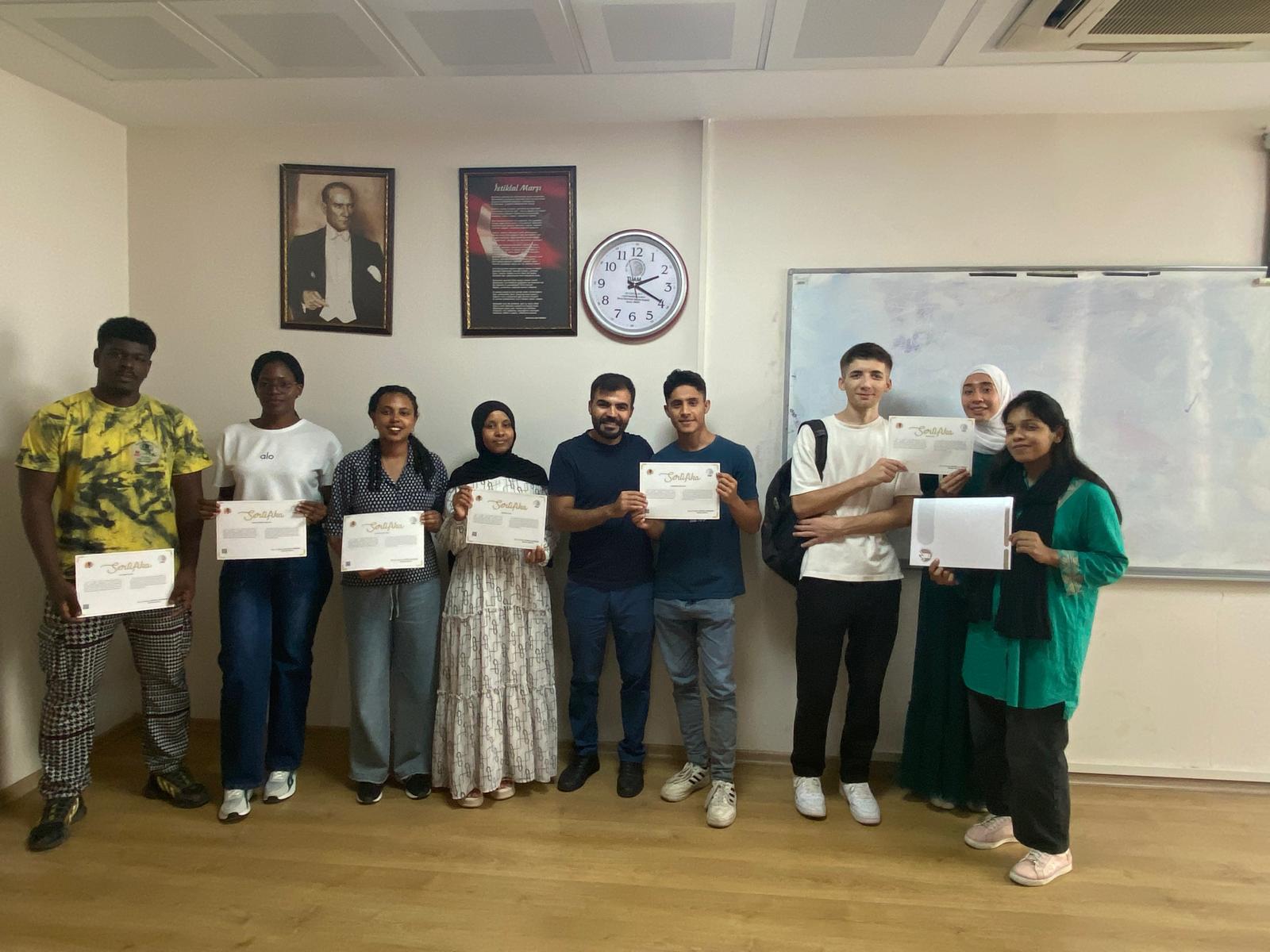 Yaklaşık bir yıllık eğitim-öğretim sürecini tamamlayan öğrenciler emeklerinin karşılıklarını aldıkları sertifika teslim gününde mutluluklarını paylaşarak MEÜ TUAM kurumuna veda ettiler. MEÜ TUAM olarak, eğitim- öğretim süreçlerine ortak olduğumuz öğrencilerimizi tebrik ediyor ve başarılarının devamını diliyoruz. Ayrıca, bu süreçteki tüm öğretim görevlilerimize, farklı branşlardan akademik Türkçe eğitimine destek veren öğretim üyelerimize de teşekkürlerimizi sunuyoruz.