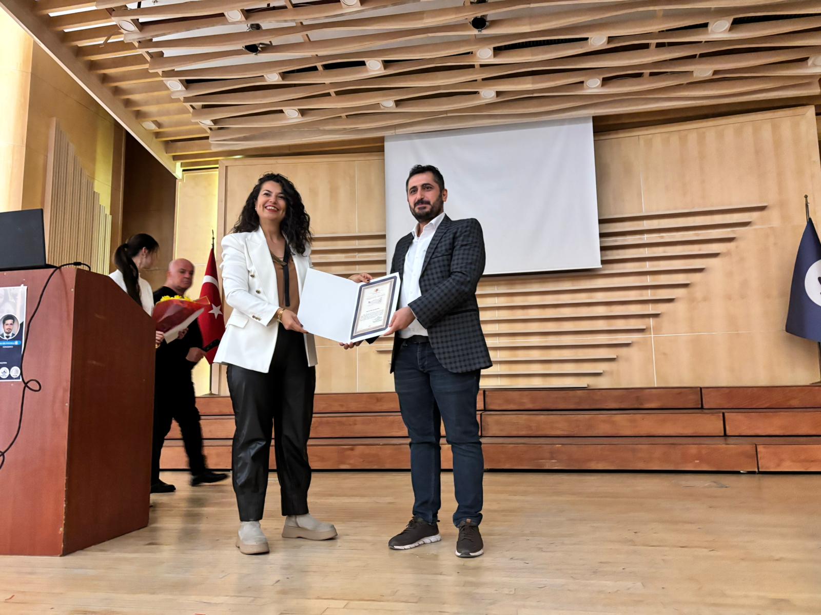 Sunumun ardından Mersin Üniversitesi TUAM VE YÖRMER Müdürü Doç. Dr. İmran Gündüz Alptürker tarafından kurumlar adına konferansa katılımı ve katkıları dolayısıyla Dr. Öğr. Üyesi Bilal Özel’e teşekkür belgesi ve çiçek takdim edildi.