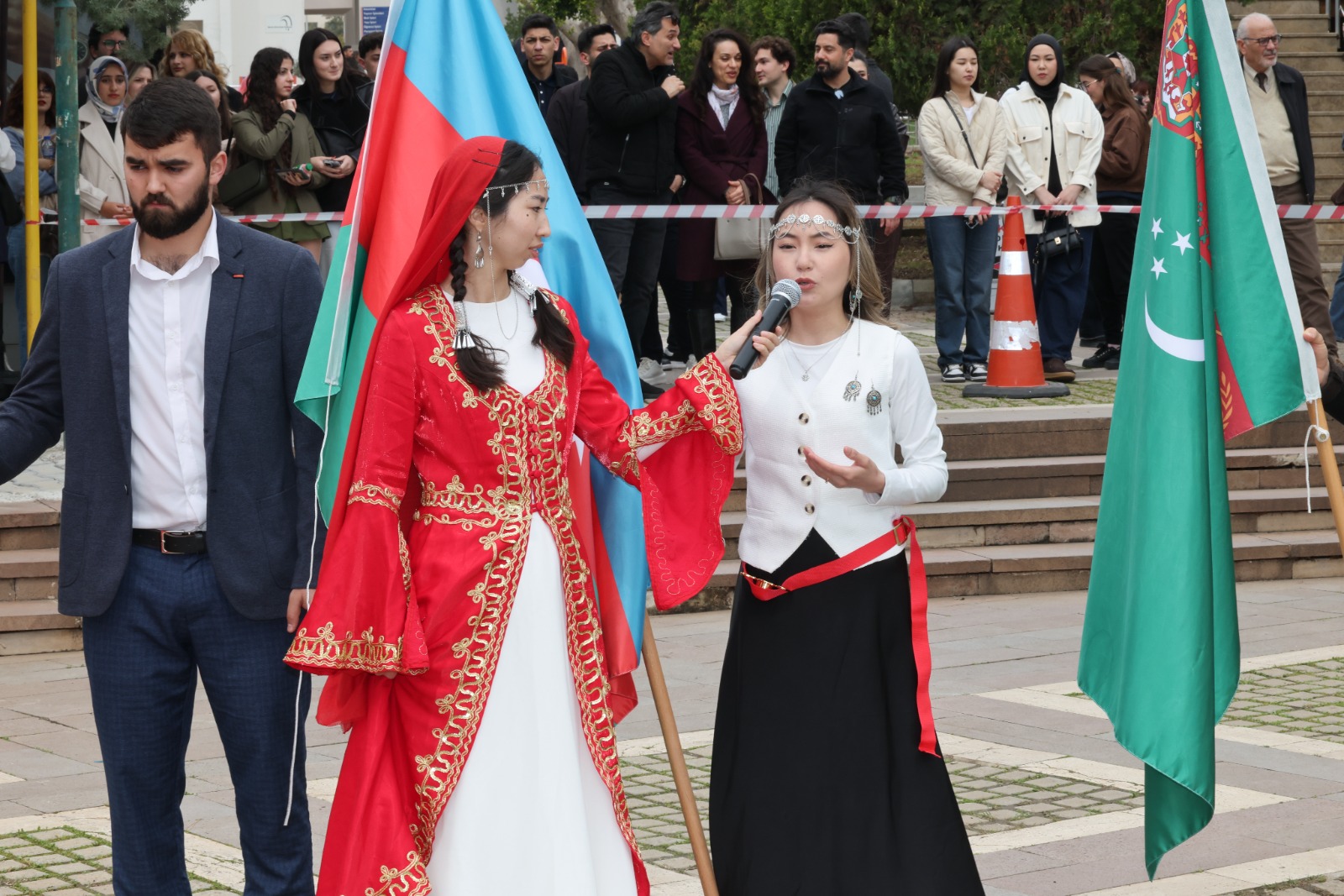 Program, Üniversitemiz Rektörlük Fuaye Alanı’nda “Mustafa Gümüş’ün Yörüklerin İzinde Fotoğraf Sergisi”nin açılışının ardından Cumhuriyet Meydanı’nda “Nevruz Bayramı” etkinliği ile devam etti. Etkinlik, Gazi Mustafa Kemal Atatürk ve aziz şehitler anısına yapılan saygı duruşu ve İstiklal Marşı ile başladı. Açılış konuşmasını gerçekleştiren TUAM ve YÖRMER Merkez Müdürü Doç. Dr. İmran Gündüz Alptürker, Nevruz’un önemine değindi. Etkinlikler kapsamında öğrenciler tarafından “Türk Devletleri Bayrak Gösterisi” sunulurken, ardından Nevruz manileri ve şiirleri okundu. Semeni dans gösterisi ile Nevruz’un geleneksel unsurları sahneye taşındı. Programda TUAM öğrencileri Hızır Ata Duasını sergilerken Türk Dili Bölümü öğrencileri tarafından ise Nevruz Şaman Duası ve Dede Korkut Duası gibi ritüeller gerçekleştirildi. Protokol üyeleri, geleneksel mani küpünden mani çekerek etkinliğe katılım sağladı.